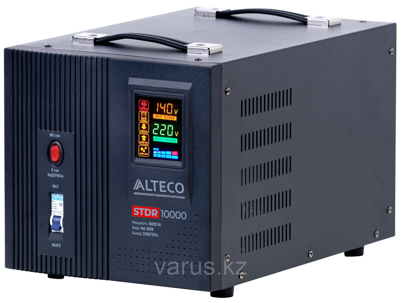 Автоматический cтабилизатор напряжения ALTECO STDR 10000 предназначен для обеспечения стабильным напряжением подключенных к нему устройств. Широко используется в бытовых и промышленных сферах для защиты техники от аварийных скачков электроэнергии. Данная модель оборудована интегрированным цветным светодиодным цифровой дисплеем, (отображает входное и выходное напряжение, работу, задержку, защиту от низкого напряжения, защиту от перенапряжения, перегрузку)
